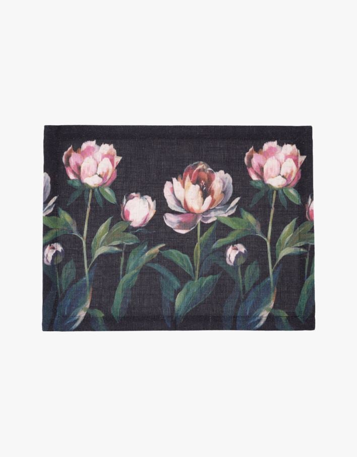 Helppohoitoinen kukkakuviollinen tabletti, jonka materiaali on polyesteri- ja pellavasekoitetta.