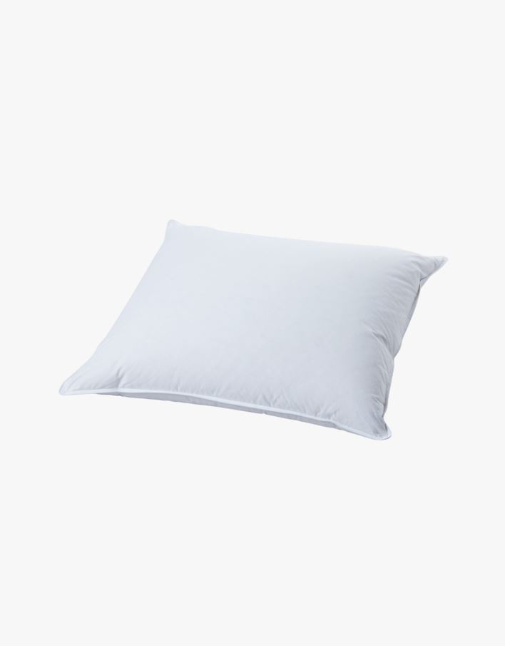 Keskikorkea untuvatyyny, jonka päällikangas on puuvillaa ja täyte ankanuntuvaa sekä -höyheniä.